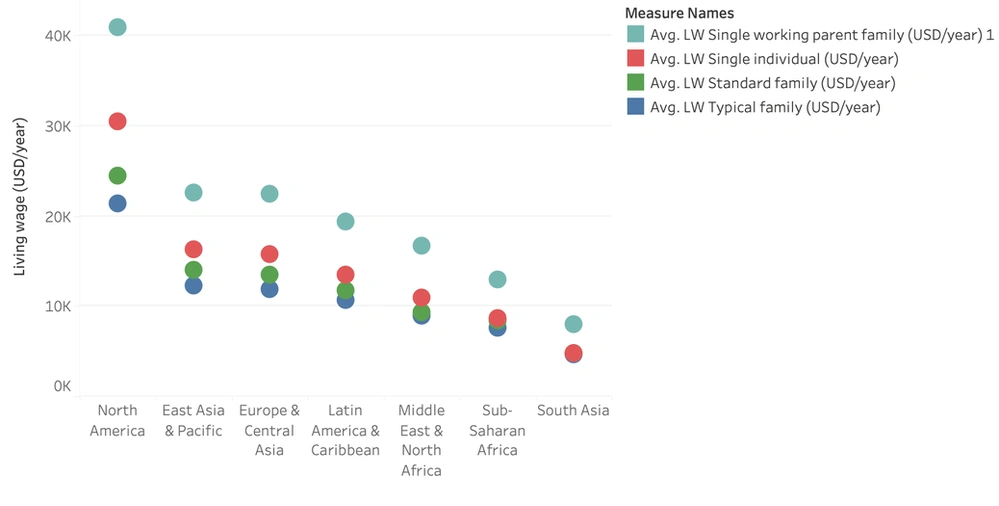 The following figures are analysis output from the Global Living Wage Dataset, to support its use and interpretation.