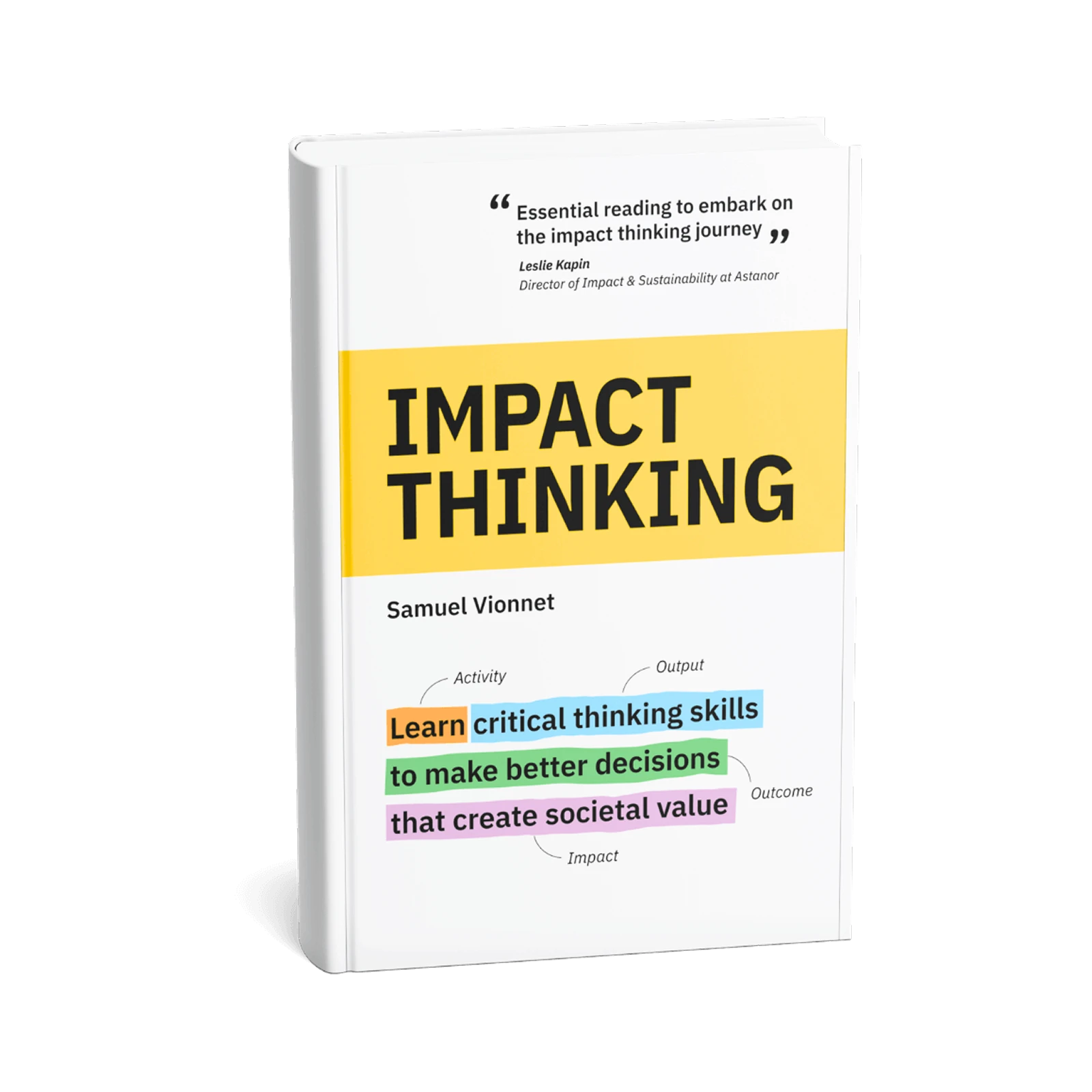 This book proposes practical checklists, thinking models, and other resources to address the three pillars of impact thinking: impact assessment, management and strategy. It builds on Valuing Impact CEO and founder Samuel Vionnet’s 15 years’ experience in the field, working with the biggest organizations in the world, both in the private and investment sectors.